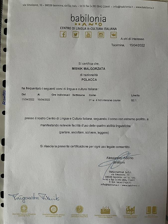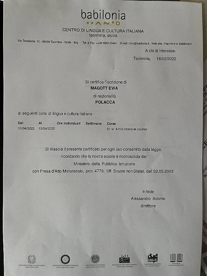 Nauczyciele naszej szkoły: Ewa Magott i Małgorzata Miśnik wzięły udział w kursie języka włoskiego w dniach 11.-15.04.2022.